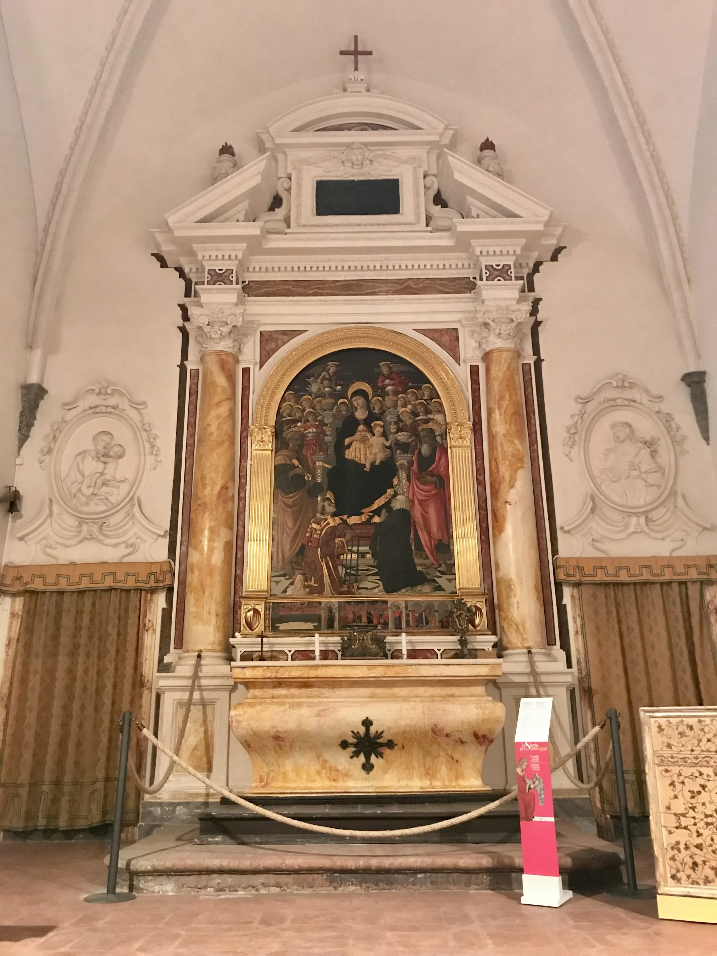 Santa Maria delle Nevi was built at the behest of Giovanni Cinughi between 1471 and 1477, and houses a Renaissance masterpiece by Matteo di Giovanni, the subject of which is the name of this church, Our Lady of the Snows. This is one of my favourite miracles, one which occurred in Rome on 5 August 352 or 358CE. A wealthy patrician and his wife wanted to donate money to make something to honour of the Virgin, but they weren’t sure what, and so, they prayed. The Virgin appeared to both the patrician and the pope, informing them that it would snow (in August!) and that this was where her church should be built. They processed to the site of this extraordinary snowfall where Pope Liberius (352-366) marked out the floor plan of what was to become the basilica of Santa Maria Maggiore, one of the most important Marian churches in the world.
